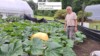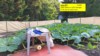 My cube pumpkin! The 2501 Bernstrom x 2222 Gienger cross looks OK. Shown at 18 DAP. This pumpkin gets a lot of hot, evening sun, so I built a Sun shade (shown on left)