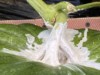 A side view of it. Notice the tan color in the ribs that is where the mites fed the most heavily. Obviously it didn�t seem to slow down the melons growth too much.