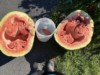 Another shot of the 201� OTT watermelon. The melon is on the ground and so is the Rubbermaid trash can