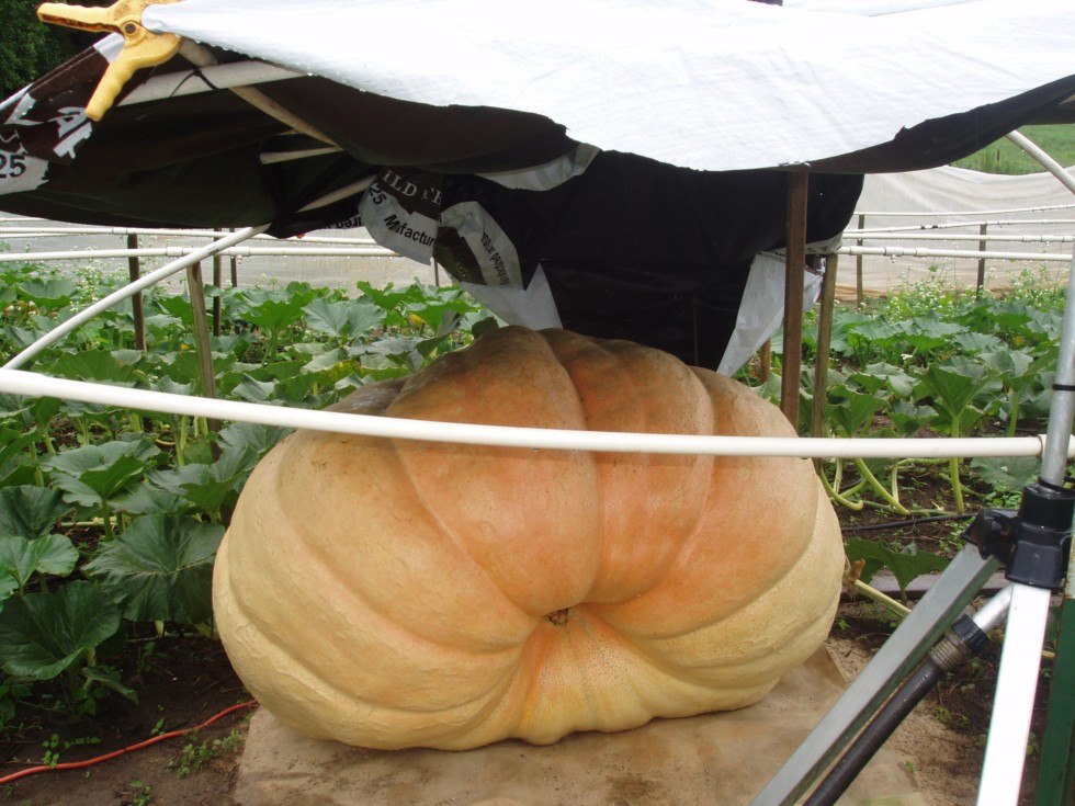 This is the pumpkin John has going on the 1791 Holland. It's taping at 697 lbs. John is willing to go to any length to grow these giants and all his hard work is paying off this season.