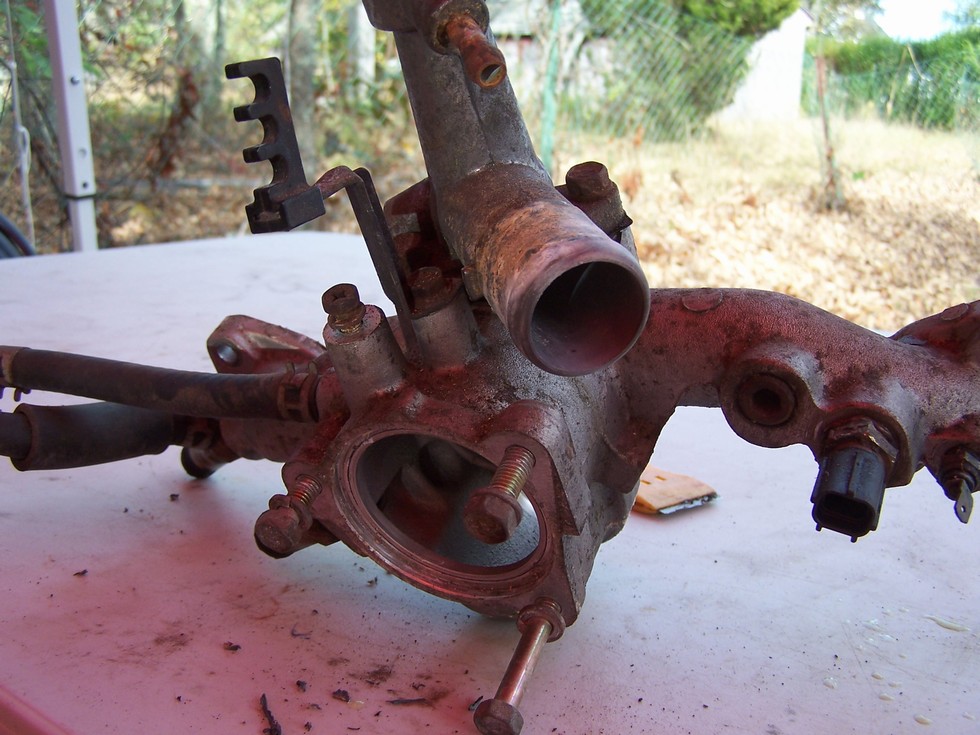 time to start on this thermostat housing, not sure what color powdercoat yet on this, valve covers are done , went with gloss black, they look great.