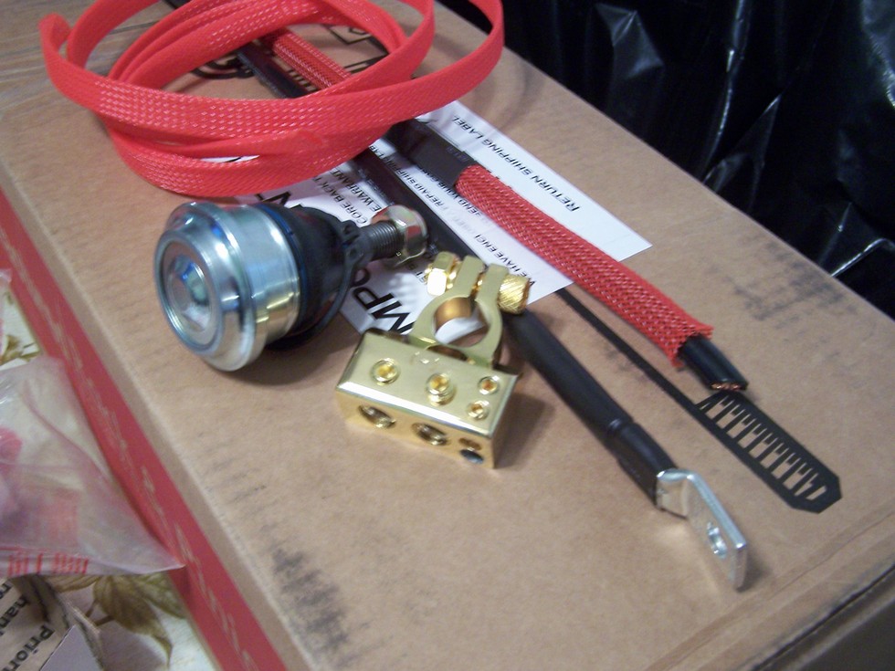 getting some of the wiring ready #2 guage wire for the ground and positive. found some neat battery terminals, also need to drill that ball joint for grease fittings, uggg......