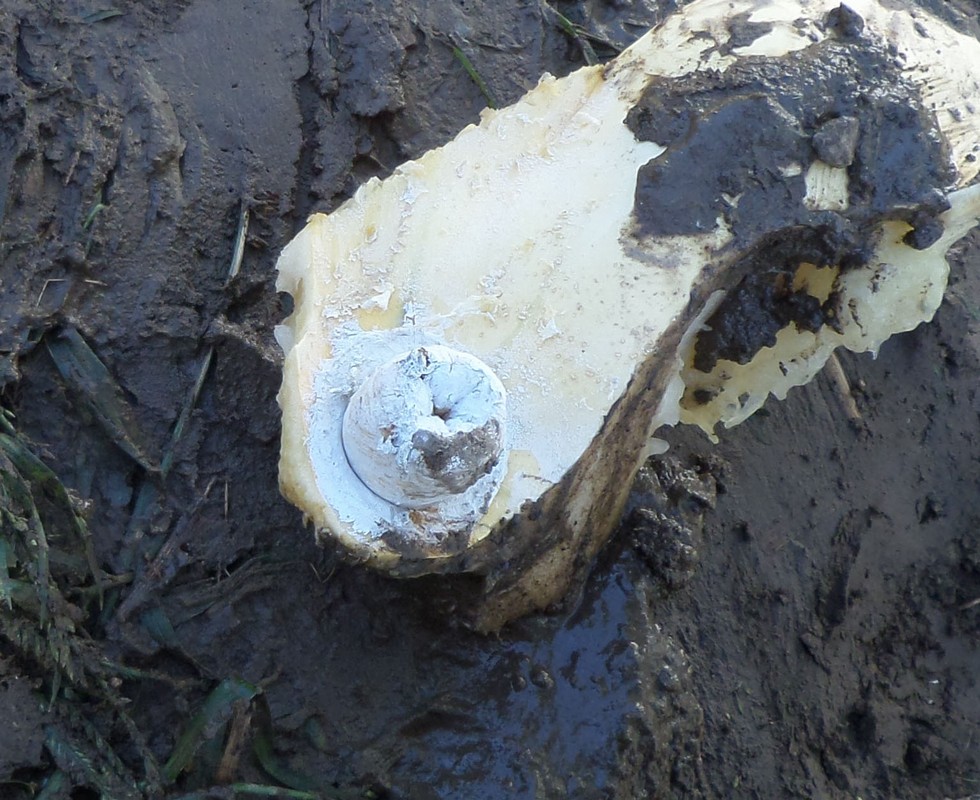 I had thought that the blossom end had rotted under the pumpkin, but found it under the goo, seems fine to me