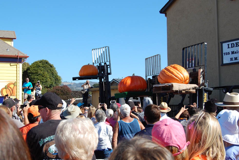 The pretty ones are lifted above the crowd for the audience vote. Eric Carlson won the Howard Dill Award with his 391 in the center.