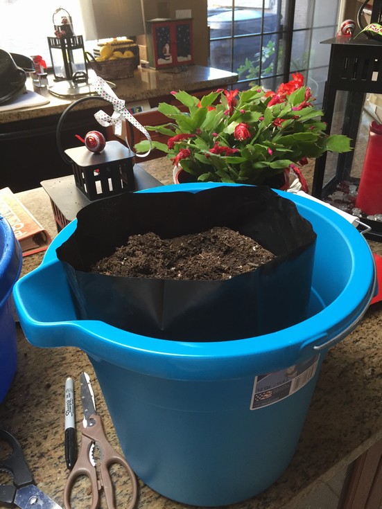 Putting grow bags in these cheap buckets so I can transport them and keep them from leaking. Under flourescents at night, starting to give them some sunlight during the day. 50's to 60's during the day right now....30's to 40's at night