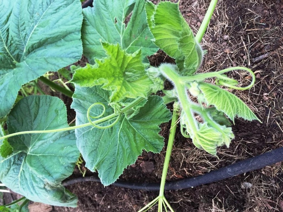 A candidate has appeared on the 1969 Haist - The vine looks super healthy, the vine diameter greater at 8' than at the stem. Big green healthy leaves leading to a tiny female flower at 9.5 ft - a little short on vine, but a candidate. Looks like we have every chance to be successful passing the 2015 454 pounder - maybe double. The vines look waaaaaay better. Very exciting.