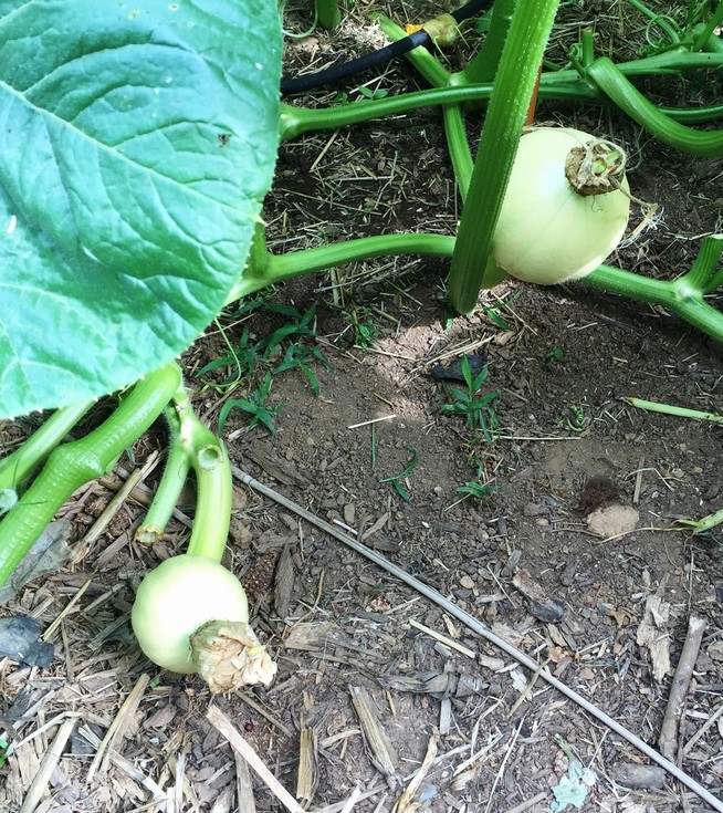 FINALLY - 1969Haist has made a showing - 3 small fruits have taken hold. This vine has the biggest and tallest leaves of the 3. This where the boy boy will come, either Peaches or Max and a third candidate.