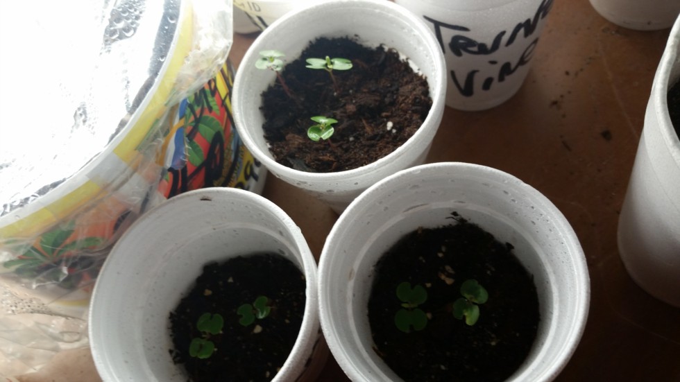 Theese are my trumpet vine seeds doing well first time i tryed from seed orange trumpet vine