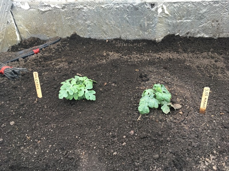 Decided to plant the 100 Crews melon I grafted. I'll pull the slowest grower. The grafted plant looks really healthy.