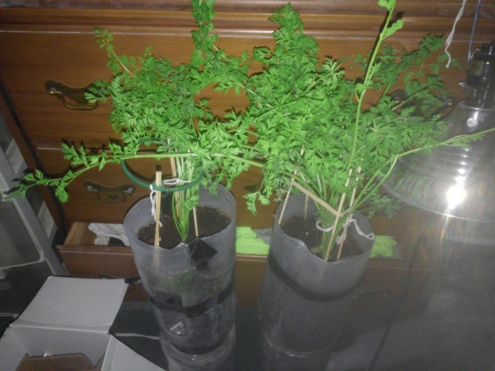 Hear are my two carrots they are doing good new sprouts every d as y trying to get into ground this week look out bnot lmao