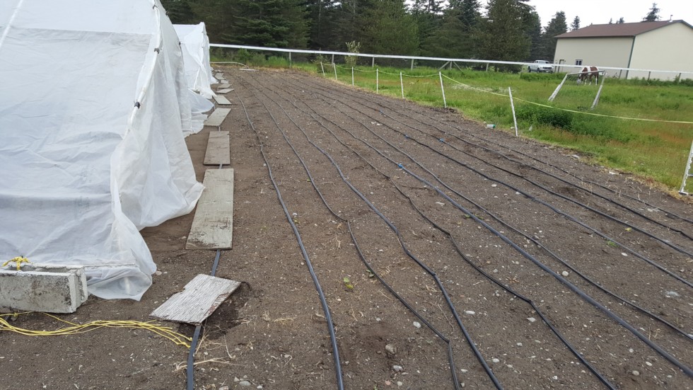 Here is the back side of the patch. Vine burying started today, and my longest is 4 foot 4 inches, with the others in hot pursuit. Since they've laid down nicely, I was able to make culling decisions on most of the plants. So far in hoop 1 the 1910 is selected; in hoop 2 the 2624 and 1844 are my chosen ones, then in hoop 3 my 2145 gets the nod. All I have left to decide on are the 2145 vs 2307 and in hoop 3 the 2145 vs 2075.