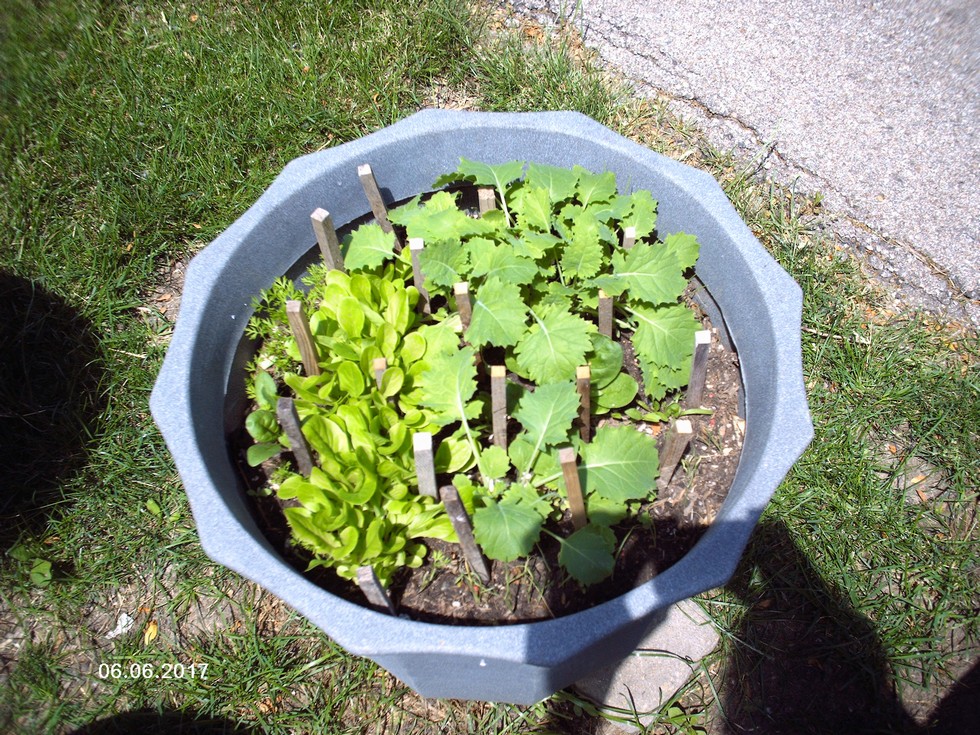 Kale, baby Romaine lettuce, Nantes carrots and Walla Walla onions.