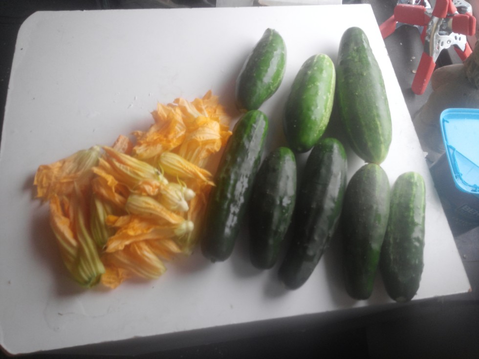 Bein eating squash nb lossoms and cucumbers lol
