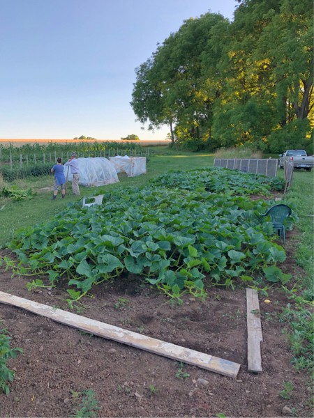 A look at ol doc Moore�s patch...looking much stronger than last year...the 3� of compost tilled in early spring is helping...89 yrs young and gardening a full 1.5 acres...most which goes to the local food bank...I go up a few times a week to help him get �caught up�....