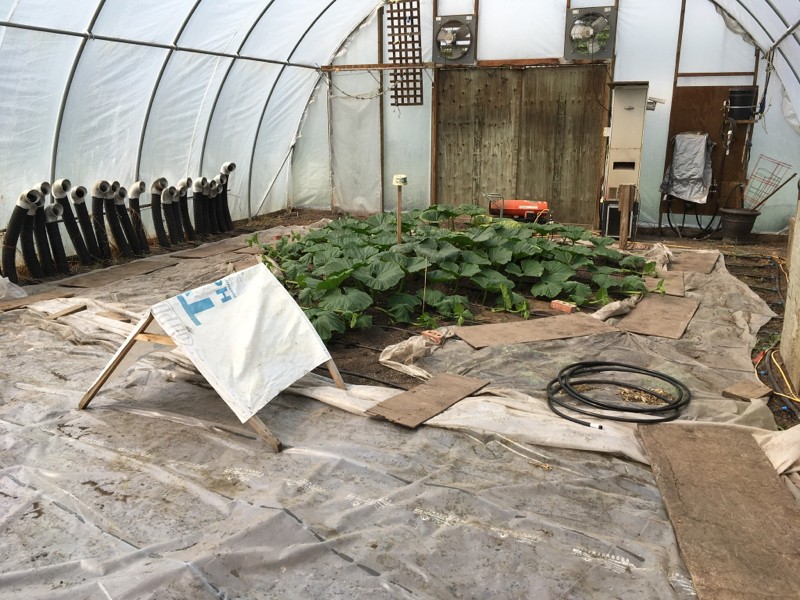 I�m letting this one grow a big plant before pollination. Showing some signs of salt damage from our soil. I�m going to water it well and see what happens. Also some damage from our +30 temps this week. A little smokey today.