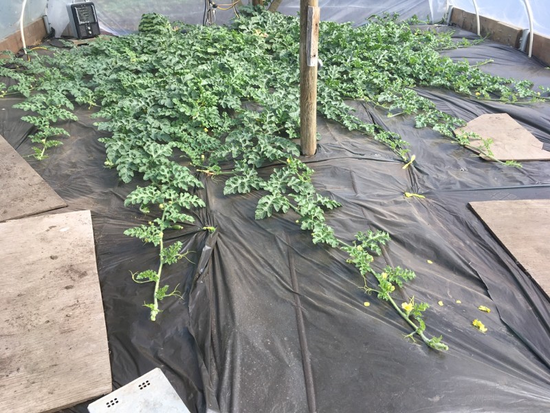 327 Kent pollinated on the main vine. This is a good spot and time. Hopefully the shape is longer than that one at the rear of the plant. It�s a ball.