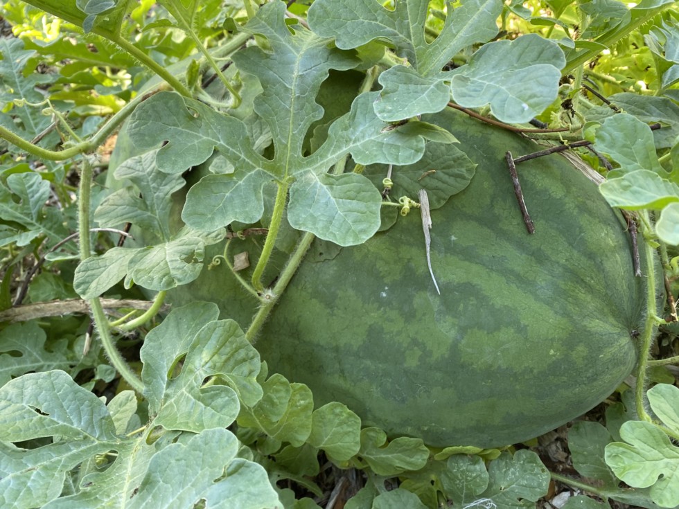 175 Ciesielski melon an f2 hybrid from Chris Kent�s 2017 jbd and cc cross. This has not gotten any care and is just growing over some wood chip mulch. It is being grown mostly for seed reasons