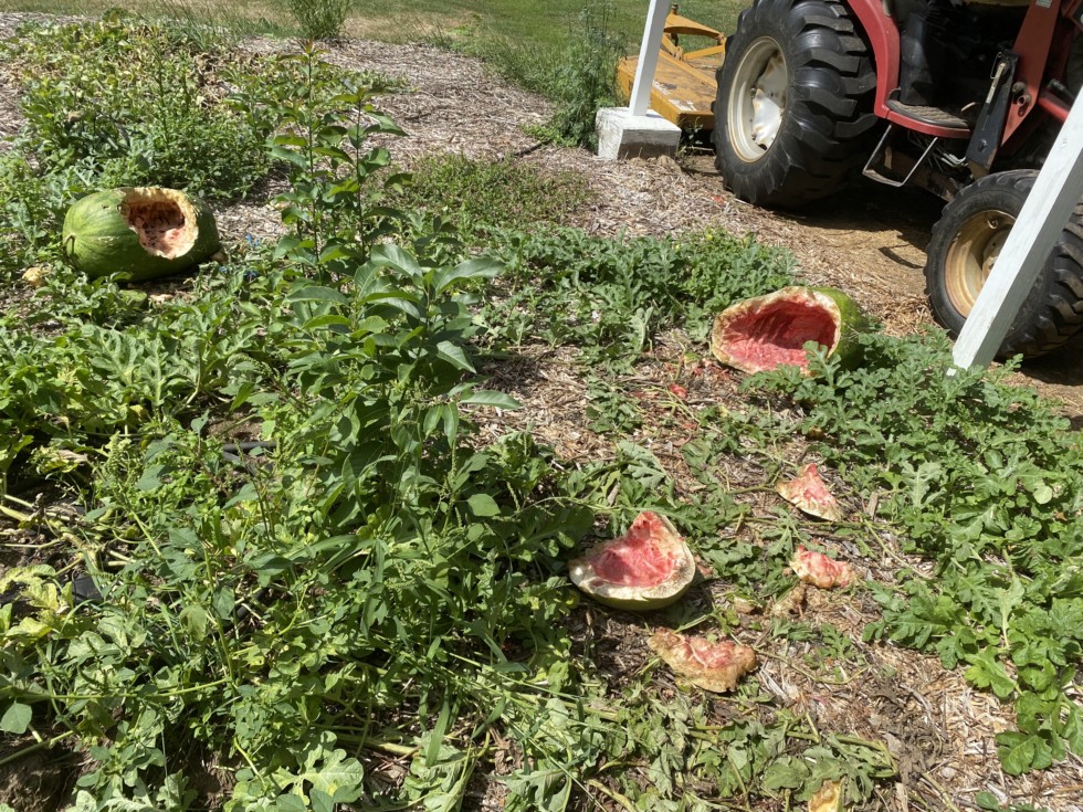 This is a first for me. Bear damage on the 175 Ciesielski wood chip melon. This melon had to be around 100 pounds or so the bear moved it about ten feet from where it was growing