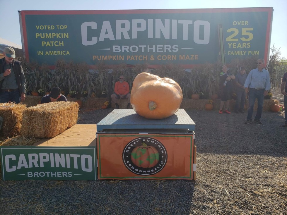 It weighed in at 345 pounds. I am not sure what the official measurements were but I had it estimated at 316 pounds with my measurements which would put it at about 9% heavy. I was getting ready to head down and pick it up when someone called and offered to buy it from. I sold it it which saved me a 3 hour round trip down to Kent but unfortunately I didn't really take any decent pictures of it off of the vine. It looked halfway decent from the blossom side.