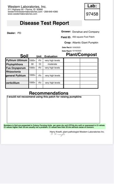 Had a soil test done for disease at the end of the season, and the levels were off the chart.