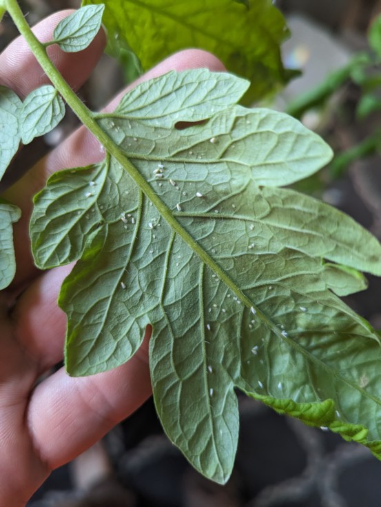 So what is going on with my overwintering 9.65. it is the bacterial wilt from last year??? Oh wait what is under the leaf?!?!?. UGH.white flies......for frick sake..... seriously. Hello Amazon one case of Neem oil please.....