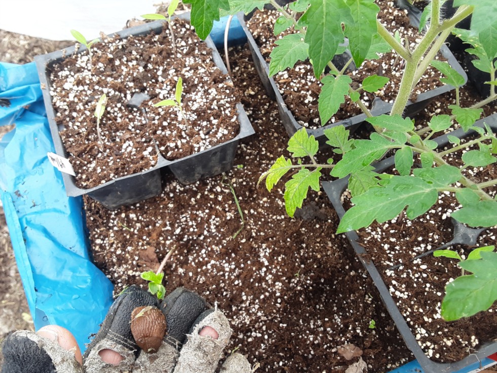 Someone nibbled my giant sunflower starts. Tossing this one culprit into the the fish pond. Its an eat and be eaten kinda world...
