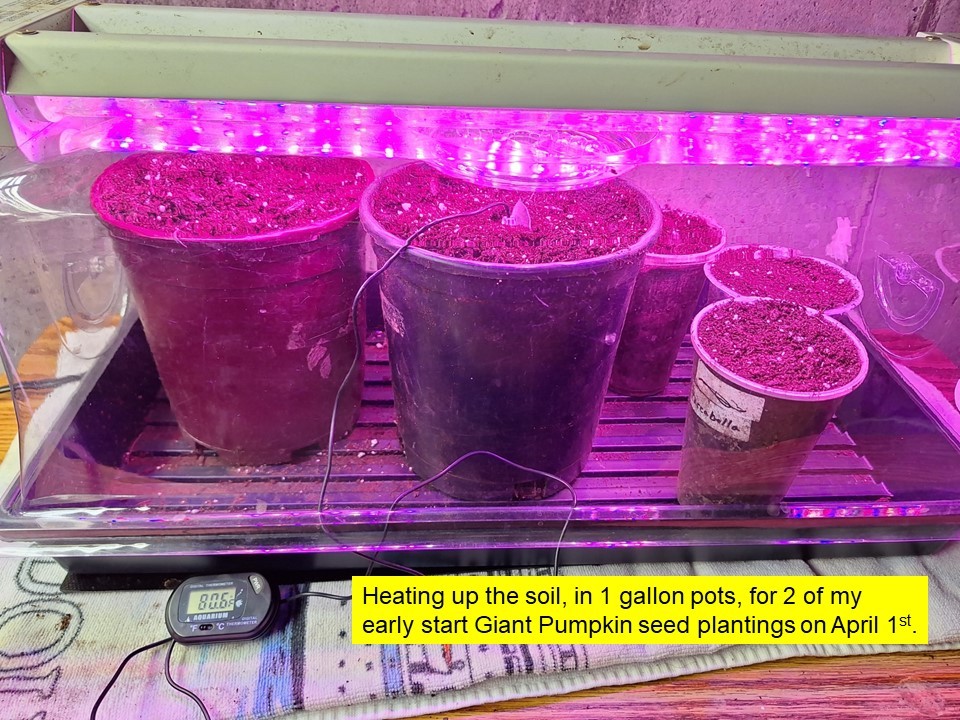 This year I'm starting a couple Giant Pumpkins early (April 1st). With the Heating cables and Heat Lamps costs, I"m gonna have some large electric bills. The remaing 3 Giant Pumpkins will get planted on April 10th.