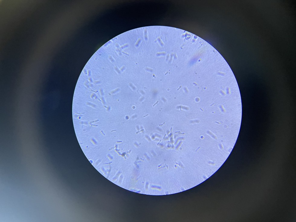 Compost brew at day 4 @ 70F with bubbler, I think the jointed lines are bacteria splitting(?)