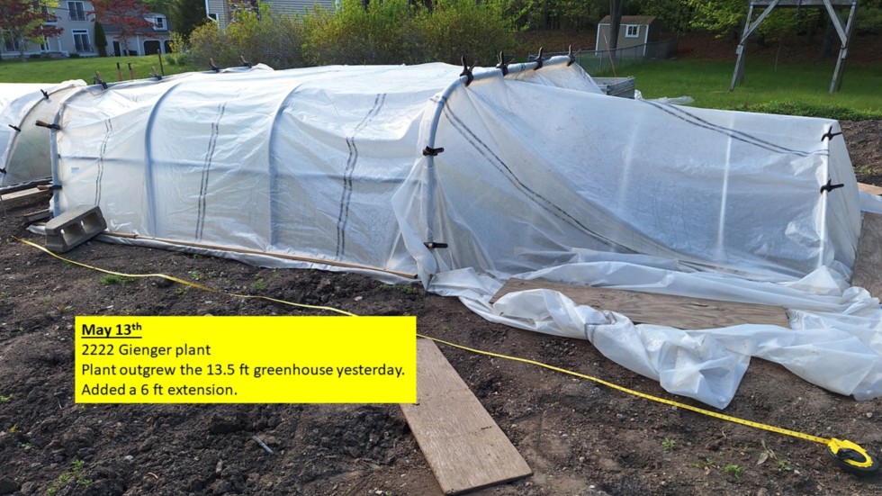 More nights in the 40's predicted this week so its time for an addition. The 2222 Gienger outgrew the 13.5 ft Greenhouse so I added a 6 ft extention. Hopefully this will carry me to some warmer weather.