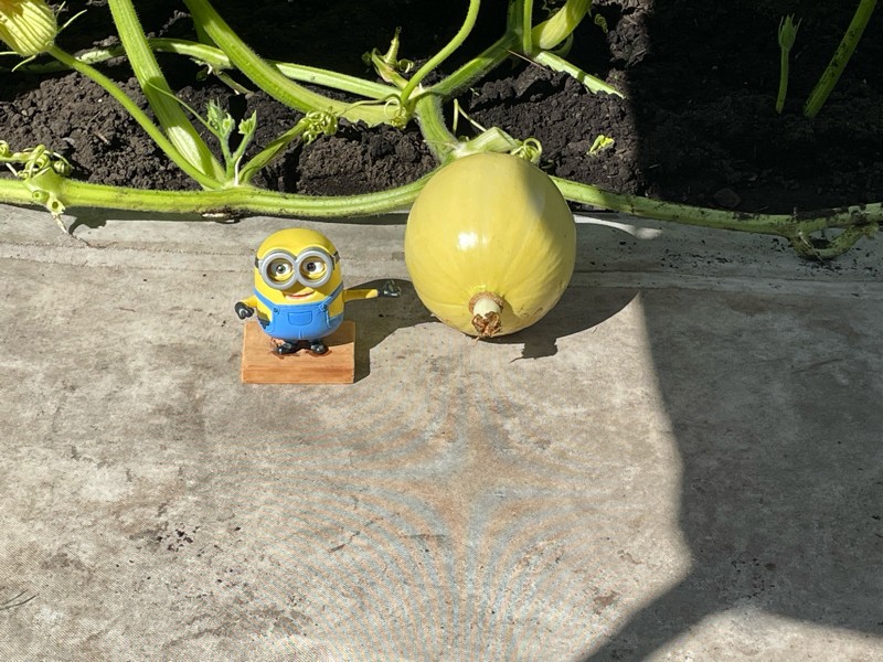 Here is our model Bob with our 1503 Young x 839 Sandercock. She was pollinated on June 21st and is 13 feet down the main vine. She has an OTT measurement of 54�.