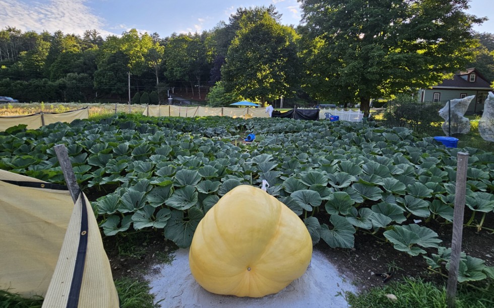 The plant has almost fully filled in its 1100-ish sq ft space, at first I wasn't sure if I liked that the pumpkins were on the very ends of the patch - but now it's starting to grow on me! Easy access lol.