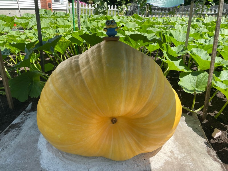 Last but not least is Fannie (1503 Young x 839 Sandercock) who turned 30 days old today and estimates at 447 pounds. The plant has a few terminated secondaries which may be slowing her down. Happy with the seed though!