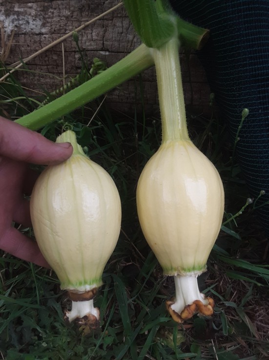 These are off different plants but they sure look the same. They're both the result of Ashton's Jutras squash x 2554 cross. Its probably too late to grow a pumpkin unless its grown in a hoophouse but who knows. Indian summer maybe?