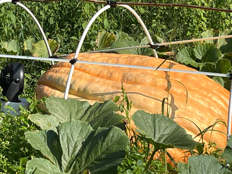I am fairing a little better in the pumpkin department. It's that hang on til they get weighed time of year. The growth is minimal at this point but maybe still packing on a few pounds. Last year my 839 went 13% heavy to give me a PB and it looks like I will need this years pumpkins to go heavy too if I want to pass my 1321. At last measurement my two biggest have the exact same OTT. They have 2 different shapes so it will be interesting to guess. The 421 is a long low model.
