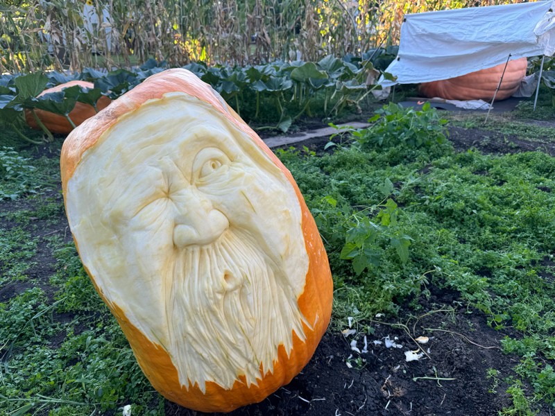Lost a couple nice 300+ pounders. These were the ones I take to festivals to carve. At least one got a face. Sperry kin in background still doing 13 pounds a day in the B patch!