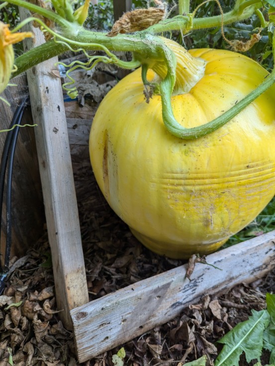 After removing one side of the frame and getting the pumpkin to the ground you can see just how smashed it really was in that tiny little space. Wow......