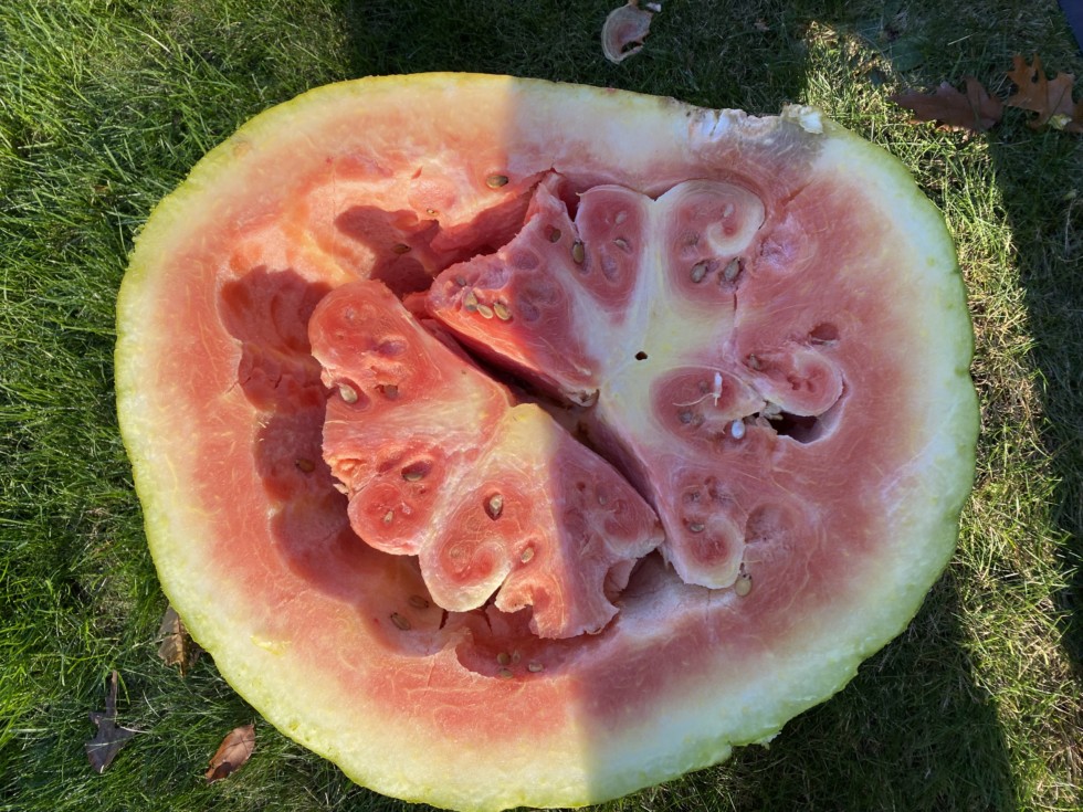 A five Lober with tan seeds. Interesting the other melon on the plant also had tan seeds.