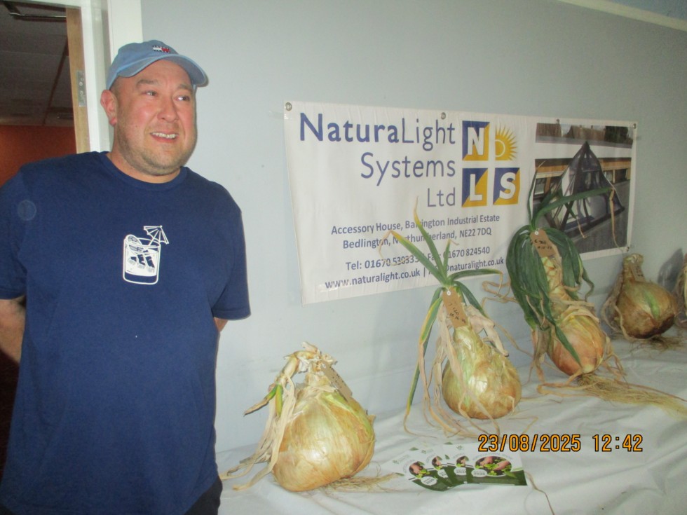 Bedlington Station show - Onion as grown. Chris Marriot a clear winner - I was pleased to gain 3rd place, mine had a good green top with strong root system so this helped the weight.
