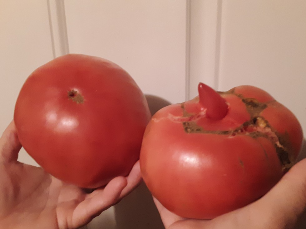 I planted the 6.02 la rue in the hope of getting some nice looking tomatoes. The results have been mixed but there is much less of the pleated curtain look that is typical for domingoes.