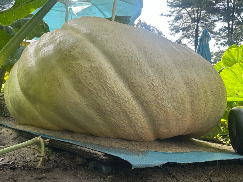 I don't think I've ever had a pumpkin look as heavy as this one so I'm really curious to see what she weighs at the scales! The blossom is completely tucked in and sucked way up under the pumpkin. Anyone have any thoughts about a shape like this when it comes to % heavy to chart?