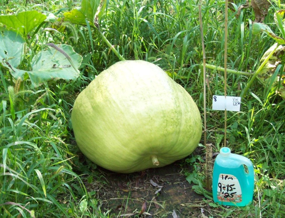 Here is 'Tushie's Daw-Daw'! 150 Gerry* '24 (1000.4 Barratt X Self) X Sib; The other 150* I planted was not getting the needed ExTra ferts that some plants seem to require; F'rinstance, 5 or so plants all in a row or whatever, all getting the same treatment, might not all be keen on setting fruit and/or retaining them (aborts) because of, possibly, traits that are unseen but exhibited as a 'more-needy' physiology in some. The same thing happened with my 178, times 3 this year. 'Feed me now...and more often!' Lol---eg PS---That other one had 2 consecutive attempts and VERY dark green they were. Incentive! eg ***The final weight was 124.8 (124) pounds.