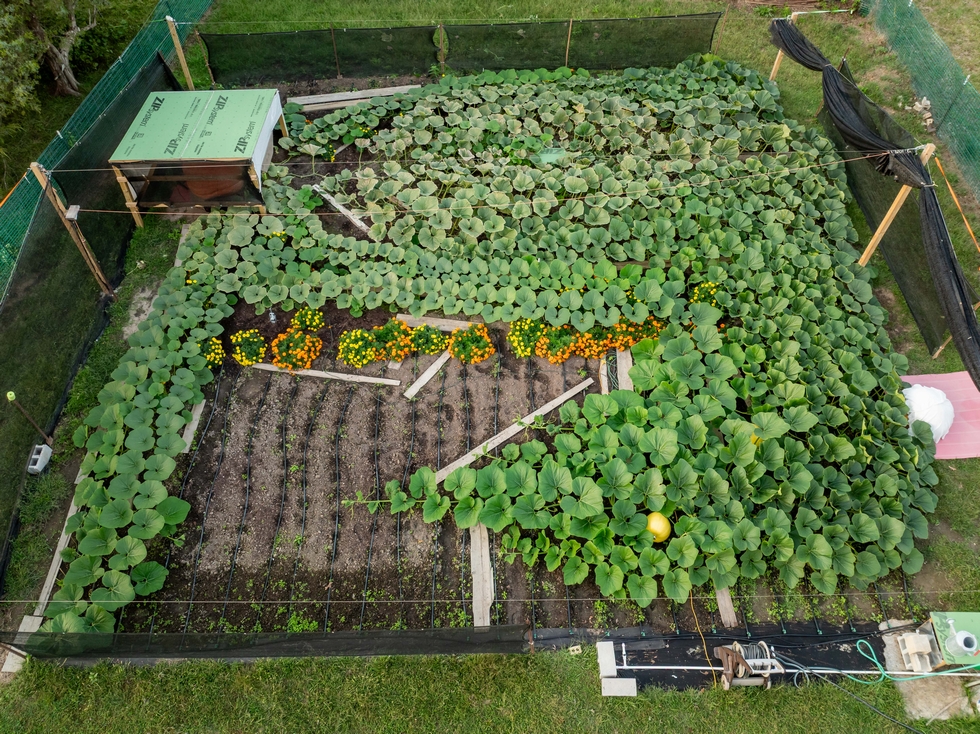 I had no disease pressure from the soil this year which was an improvement over previous years. If you can rotate fields, or take a year off from growing, I highly recommend soil solarization. Unfortunately to do this right you need to have the growing area covered in clear plastic during the middle of summer. I also rotated a soil drench of Terragrow and RootShield Plus through the drip irrigation. The oldest leaves of the plant are starting to show their age at this point. I am going to let a few porch pumpkins grow for a couple more weeks after I harvest the pumpkin at the end of next week.
