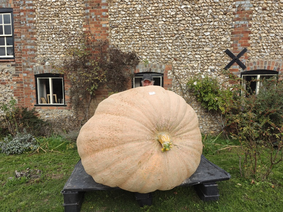 On display at Britwell Farm Shop. It'll be there until Halloween, after that I'll harvest the seeds, and the pumpkin will enter the food chain - pigs & cows love munching through giant pumpkin.