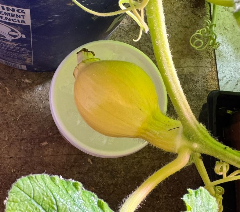 Well, it's still growing! Today is DAP 10 for my indoor winter pollination on a cutting clone! (2365 Wolf x 1885 Werner) I'm underfeeding and keeping below ideal temps in order to limit growth, so I'm surprised it hasn't aborted by now...