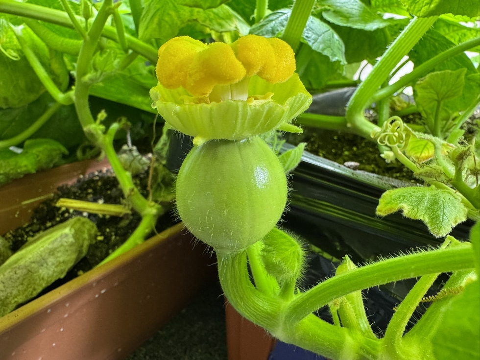 Changed my indoor feed mix since the last try aborted. Pollinated this one on Jan.11, 2026. Hopefully she doesn't abort! (1109 Jutras 2019 x 2365 Wolf 2021) Fun winter projects!