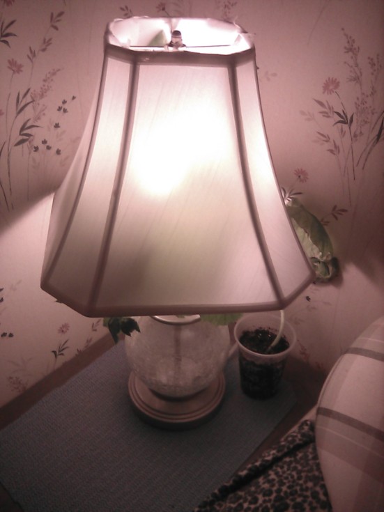 This must be the first pic of it once I had transferred it from one light to the other. I miss reaching for the light knob and having to gently push a leaf outta the way, lol. It seems to be growing at like a 1/2-inch-per-day rate butt who knows. eg