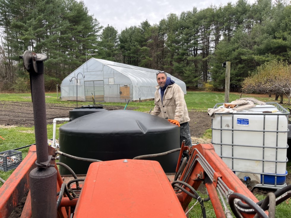 Gene Lariviere came down before the ground froze and we moved my water tanks. We also hooked up the water lines from the existing irrigation system and also connected it to my rainwater tank line. In the spring I will need to hook up my RO system to the holding tank.. Unfortunately my well water has a bad combination of high EC and low pH. Depending on how much rainwater I have stored, I blend a mixture of rainwater, RO and well water until I reach my desired EC and pH. (before adding any nutrients to it)
