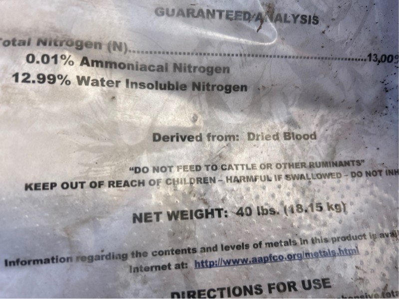 One of the things I added was a 40 pound bag of blood meal. My dog always goes nuts when I am adding blood meal. I always get a kick from reading the blood meal bag.