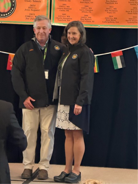 Kerry and I attended the GPC International Growers Conference in Salt Lake City Utah and received our growers jacket for growing 3 pumpkins totaling over 4300 pounds. We have gotten so close in past years but have lost the 3rd to a split or were just under the total needed.