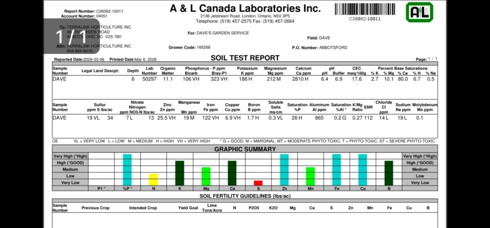 The 1st soil analysis of the year before amending. This is my best soil numbers for a start of the year. Next we will put number through the Langley calculator.